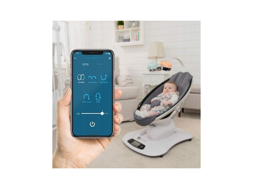 Vďaka piatim pohybom, piatim rýchlostiam a štyrom zvukom si budete môcť prispôsobiť každú jazdu v našej viacpohybovej hojdačke tak, aby vaše dieťa bolo zabavené a šťastné bez ohľadu na jeho náladu. Nová funkciaFind Your Roo™ v aplikácii 4moms (dostupná preAndroid a iOS ) vám pomôže objaviť kombináciu pohybu a rýchlosti, ktorá vám najviac vyhovuje, a podporuje plynulý prechod z náručia do hojdačky. Funkcie inteligentnej domácnosti, ako je Bluetooth a kompatibilita s hlasovým ovládaním, s Amazon Alexa a Google Home (v súčasnosti v beta verzii), integrujú hojdačku MamaRoo Baby Swing do vašej domácnosti.