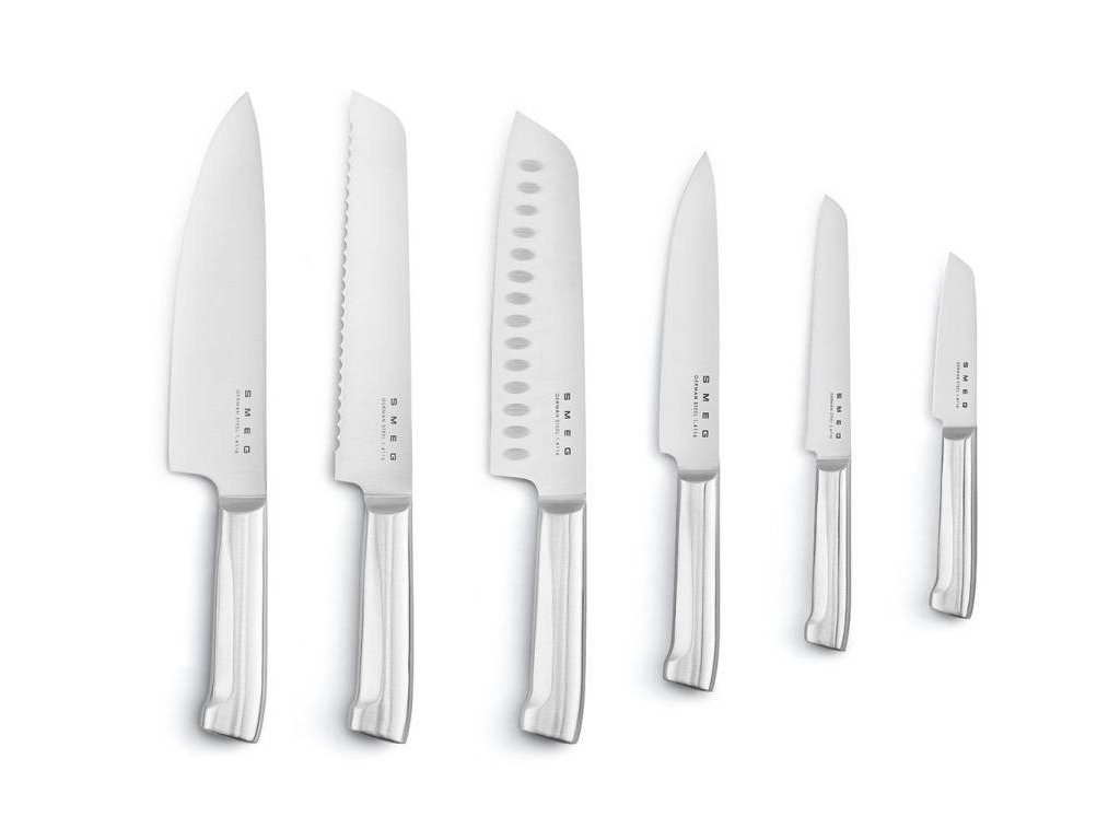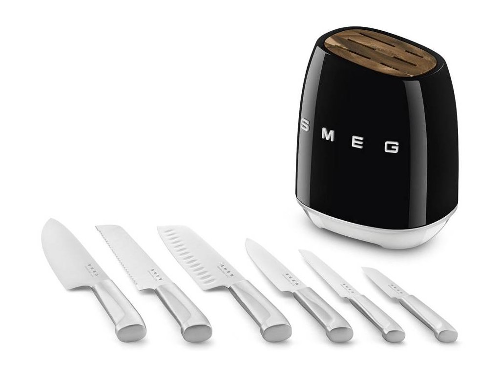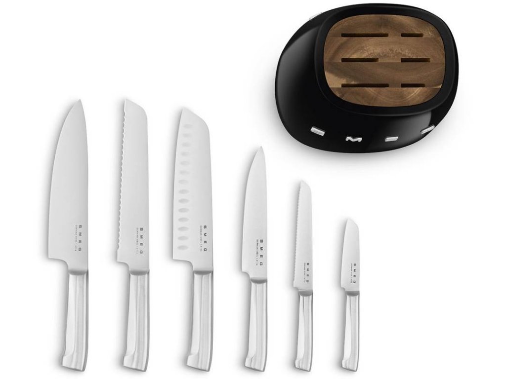 6dílná sada nožů se stojanem Smeg 50's Style KBSF02BL určená pro každodenní použití. Všechny kusy byly vyrobeny z vysoce kvalitní nerezové oceli, která poskytuje dokonalou odolnost. Jejich vysoce odolné ostré čepele výrazně usnadňují řezání. Pestrá sada nožů, která je doplněna stojanovým blokem. Každý nůž má své využití a jeho ostří bylo navrženo a navrženo tak, aby vám nabízel ten nejlepší řez pro každou ingredienci.