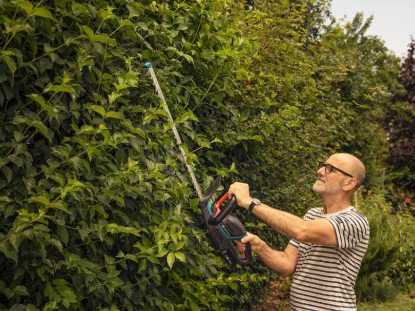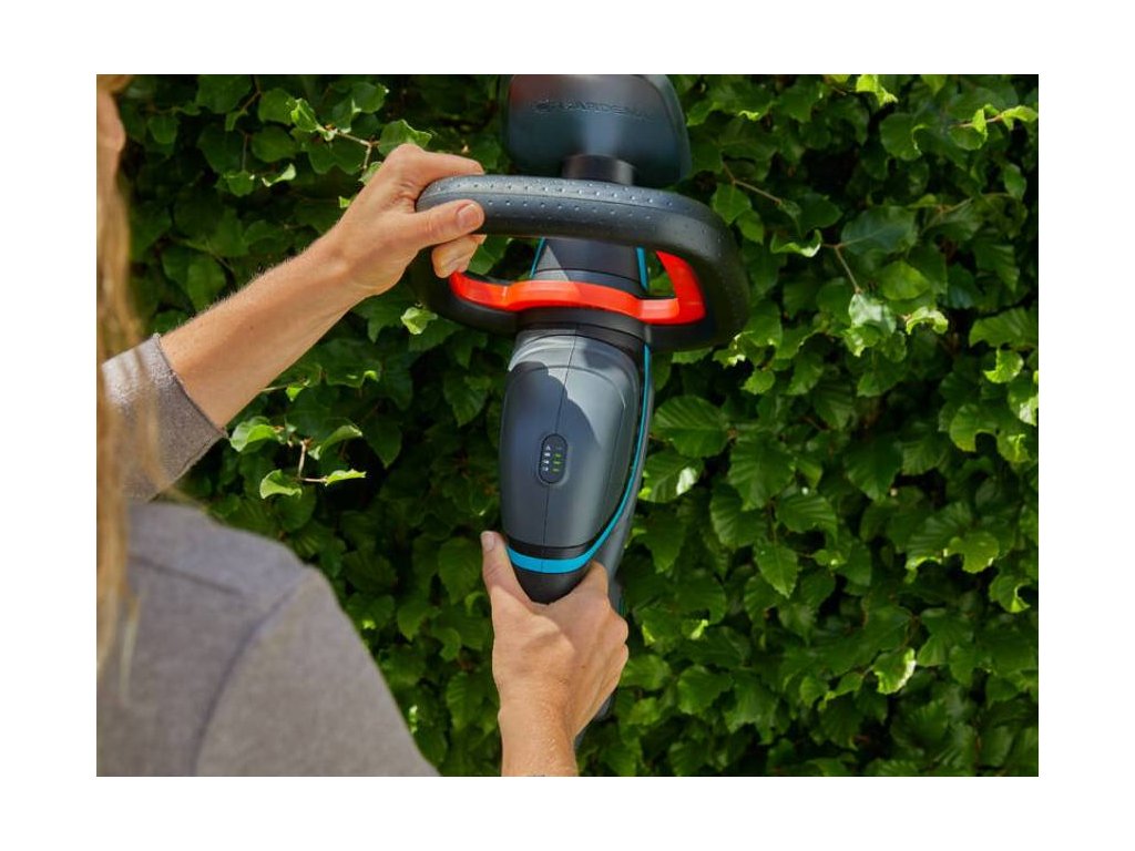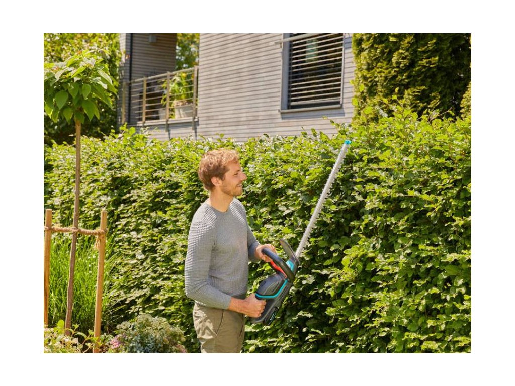 Bezšnúrové, pohodlné, ľahké a jednoduché na používanie: s GARDENA akumulátorovými nožnicami na živý plot ComfortCut 60/18V P4A môžete bez námahy strihať živý plot.