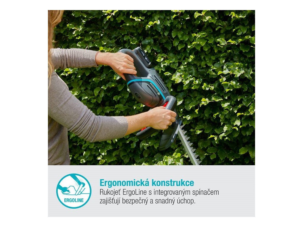 Pohodlné, lehké a snadno použitelné akumulátorové nůžky na živý plot Gardena ComfortCut 50/18V P4A 14730-55 můžete použít k ostříhání živých plotů bez velké námahy. Díky jasně viditelnému LED indikátoru přímo na přístroji jste vždy informováni o aktuální úrovni nabití, takže budete vědět, kdy je čas si udělat přestávku, abyste jej buď nabili, nebo připojili jiný akumulátor. Nůžky na živý plot jsou kompatibilní se všemi akumulátory 18V z Aliance POWER FOR ALL. V závislosti na typu použitého akumulátoru může výrobek dosáhnout doby chodu až 135 minut a ostříhat až 450 metrů čtverečních živého plotu. Díky rukojeti ErgoLine s integrovaným spínačem vám nůžky s délkou nožů 50 centimetrů vždy pohodlně padnou do ruky, bez ohledu na to, v jaké pozici pracujete. Chránič proti nárazu na špičce lišty zajišťuje při stříhání blízko země nebo podél zdí, aby se nože nepoškodily. Geometrie nožů je dokonale navržena tak, aby byl střih vždy čistý a práce byla snadná - bez přerušování. Věříme, že vás výsledky ohromí! S modelem ComfortCut již není práce únavná a namáhavá, ale bude hotová v okamžiku.
