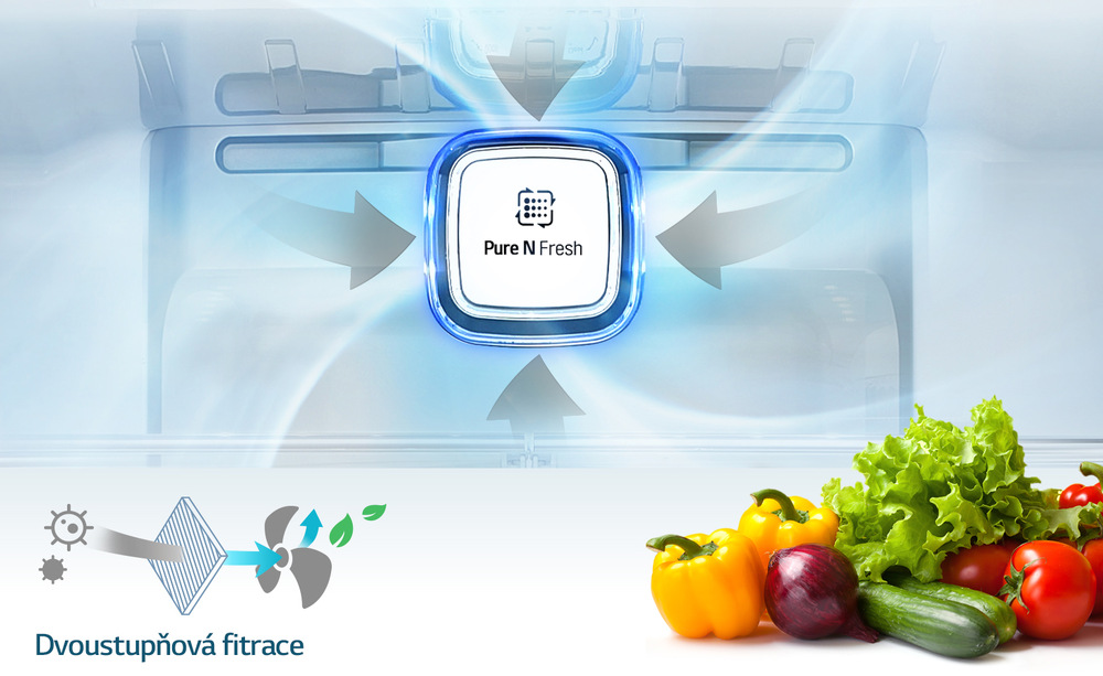 Vďačíte za to funkcii Pure N Fresh s uhlíkovým filtrom, ktorý minimalizuje pachy a udržuje vzduch vo vnútri chladničky svieži.