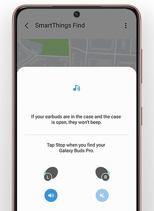 Už sa nemusíte obávať, že nebudete môcť nájsť svoje slúchadlá tesne pred odchodom z domu. Galaxy Buds Pro spolupracujú s aplikáciou SmartThings, a ak ich stratíte z dohľadu, môžete si ich nechať pípnutím bleskovo nájsť. Aj keď už nie sú pripojené k telefónu, môžete aspoň vystopovať miesto, kde ste ich naposledy použili.