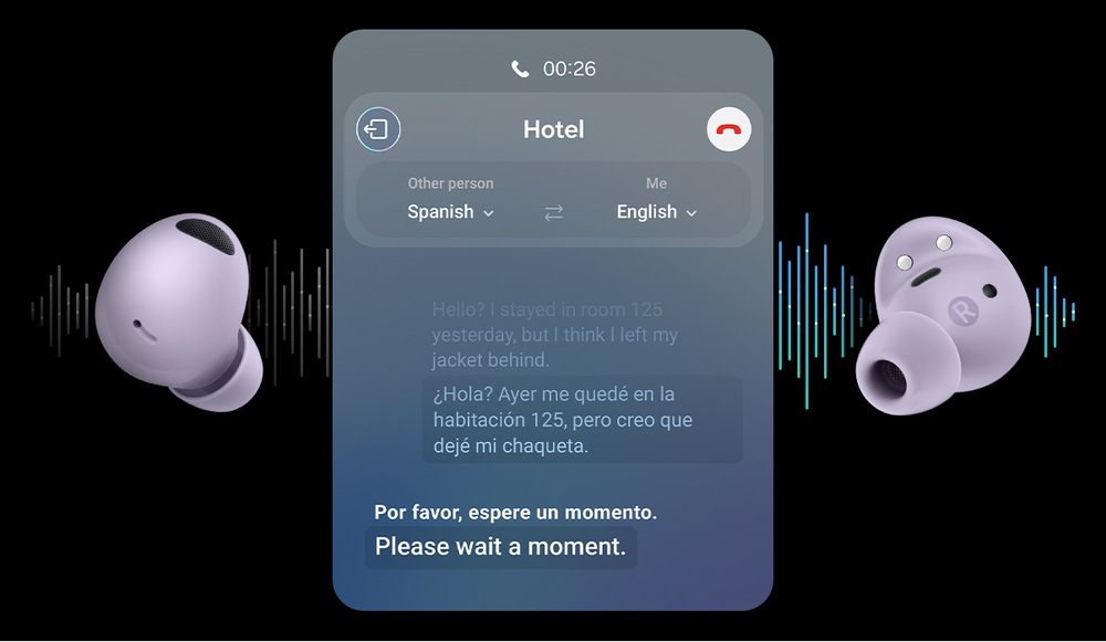 Cestovanie bez jazykových bariér je teraz možné vďaka podpore Galaxy AI. Aplikácia Interpreter, ktorá spolupracuje so slúchadlami Galaxy Buds2 Pro, umožňuje okamžitý preklad priamo do vašich uší a dokáže preložiť vaše vlastné slová prostredníctvom reproduktora mobilného telefónu. Funkcia Live Translate navyše uľahčuje telefonické rozhovory tým, že pomocou algoritmu na rozpoznávanie hlasu prepisuje vaše hovory, vďaka čomu všetko pohodlne uvidíte na obrazovke telefónu. Môžete tak ľahko objavovať svet!