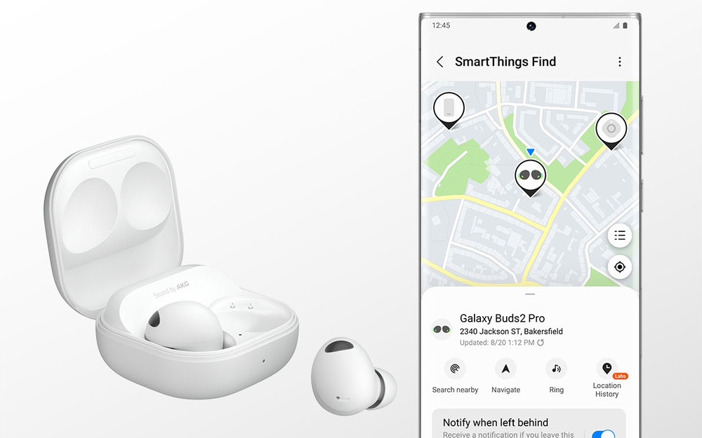 Svoje slúchadlá môžete vždy nájsť pomocou sofistikovaného lokátora v aplikácii SmartThings Find - aj keď nie sú v puzdre. Navyše sa nemusíte obávať, že ich zabudnete - ak ste preč, môžu vás upozorniť zabudovaným alarmom a oznámením na telefóne.