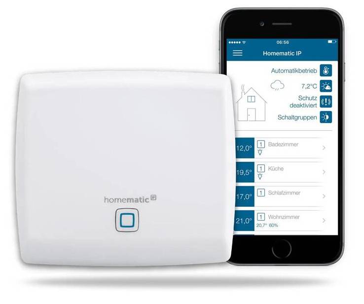 Po pripojení centrálnej jednotky (HmIP-HAP) k internetu možno všetky funkcie používať prostredníctvom bezplatnej aplikácie pre inteligentné zariadenia (Android a iOS). Intuitívna aplikácia sa pravidelne aktualizuje a rozširuje o ďalšie funkcie a zariadenia, pričom ponúka jasný prehľad o všetkých možných funkciách a scenároch. Mobilná aplikácia umožňuje ovládanie viacerých centrálnych jednotiek v rôznych inštaláciách (napr. pre rekreačné domy, prenájom bytov atď.).