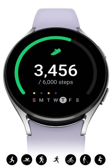 S Galaxy Watch5 se počítá doslova každý krok. Ať už vyrazíte na horskou túru nebo navštívíte posilovnu, s novými chytrými hodinkami od společnosti Samsung se můžete plně oddat zvolené fyzické aktivitě a uložit si ji do vašeho osobního fitness deníku. Vyberte si z více než 90 sportovních činností a sledujte, kolik kalorií v jejich průběhu spálíte.