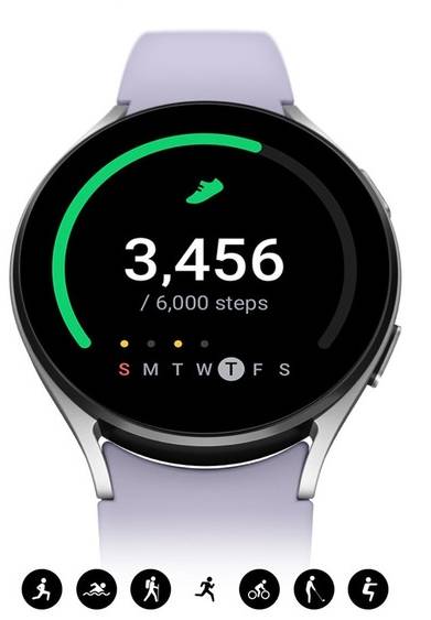 S Galaxy Watch5 sa počíta doslova každý krok. Či už idete na horskú túru, alebo do posilňovne, s novými inteligentnými hodinkami Samsung sa môžete naplno venovať vybranej fyzickej aktivite a uložiť si ju do svojhoosobného fitnes denníka. Vyberte si z viac ako 90 športových aktivít a sledujte, koľko kalórií pri nich spálite.