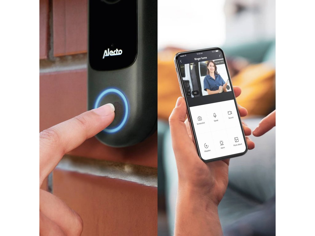Bezdrôtový inteligentný zvonček Alecto SMART-RING20 s kamerou vám ukáže, kto zvoní, nech ste kdekoľvek. Prostredníctvom bezplatnej aplikácie Smart Life budete okamžite dostávať push oznámenia do smartfónu alebo tabletu. Ak nie ste doma, môžete s osobou pri dverách hovoriť prostredníctvom aplikácie.