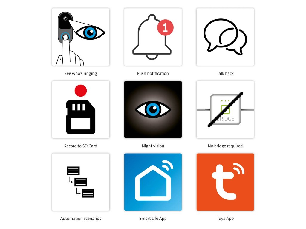 Bezdrôtový inteligentný domáci videozvonček Alecto SMART-RING20 má skvelú kvalitu obrazu a zvuku. Dokonca aj v tme uvidíte, kto je pri vašich dverách, vďaka infračervenému nočnému svetlu. Keď zazvoníte, zvonček sa rozsvieti, vďaka čomu môžete osobu veľmi dobre vidieť. Má slot na kartu SD (do 128 GB) - všetky videozáznamy s pohybom sa automaticky ukladajú na kartu SD.