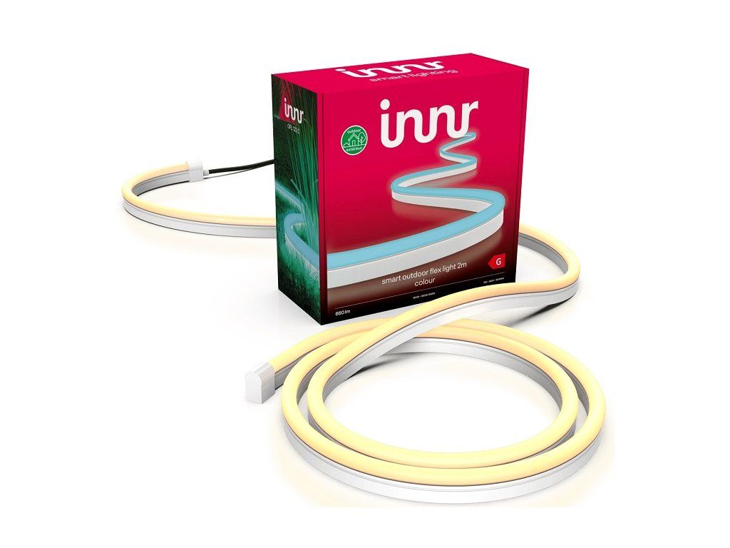 S mimoriadne dlhým inteligentným flexibilným farebným pásikom LED Innr Lighting Flex Light Colour na vonkajšie použitie môžete ľahko pridať dekoratívne farebné akcenty do záhrady alebo na balkón. Vďaka veľkému počtu LED diód budete mať mimoriadne jasné svetlo s krásnym rozptýleným efektom. Vyberte si teplé biele svetlo pre príjemnú atmosféru. Alebo do svojho exteriéru pridajte jednu zo 16 miliónov ďalších farieb.