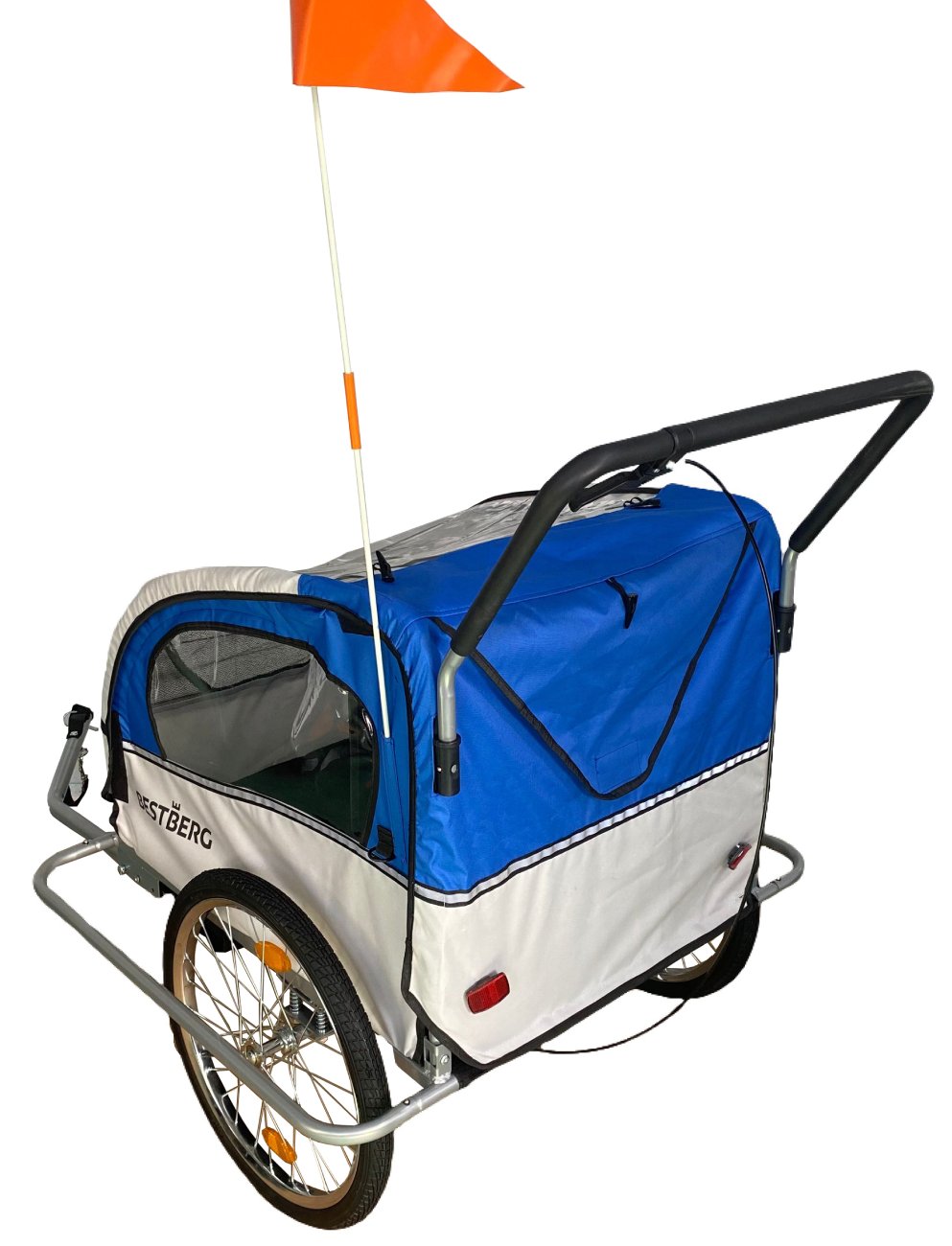 Nosnosť vozíka je až 40 kg, čo zaručuje, že na ňom môžete prevážaťdve deti a ich drobné veci. Konštrukcia vozíka je tiež vybavená dvoma pevnými pneumatikami vzadu a jednou vpredu, čo prispieva k jeho stabilite aj na nerovnom teréne. Na zvýšenie bezpečnosti je vozík vybavený bezpečnostným osvetlením na zvýšenie viditeľnosti za súmraku alebo pri jazde v hustejšej premávke, ako aj vlajkou, ktorá upozorňuje okolie na jeho prítomnosť.