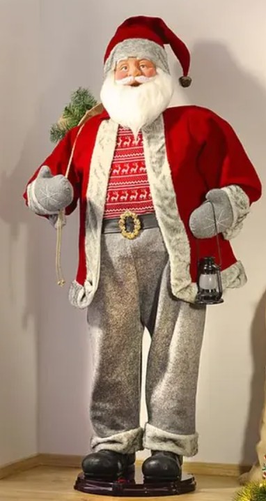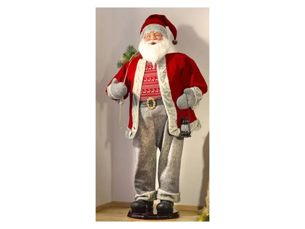 Santa Claus, ktorý je vysoký 150 cm, je celkom výnimočná vianočná dekorácia. Či už na okne, pri vchode alebo kdekoľvek v byte. Tento Santa Claus v takmer životnej veľkosti s červeným kabátom, čiernymi čižmami a bielou bradou vyčarí veselú a sviatočnú atmosféru a poteší malých aj veľkých. Santa Claus je vybavený snímačom pohybu, takže sa môže pohybovať a môže dokonca spievať. Môžete nastaviť až 5 rôznych vianočných kolied. Vďaka priloženému návodu na použitie je zostavenie tohto originálneho Santa Clausa rýchle a jednoduché.