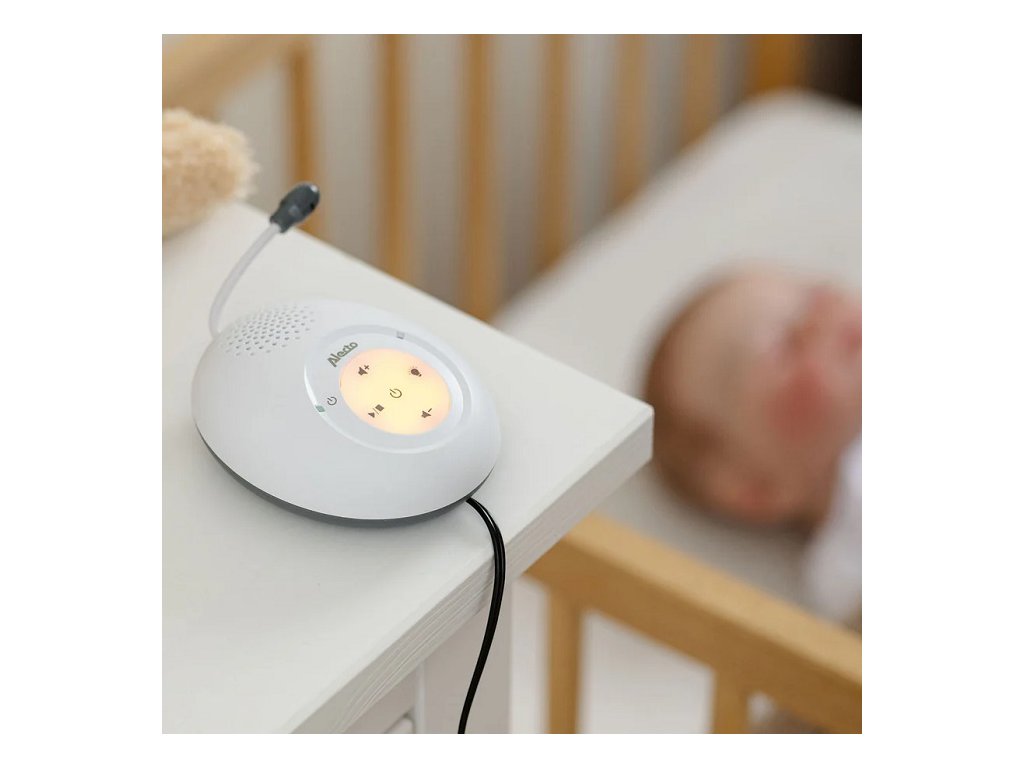 - LED indikácia intenzity zvuku, takže nemusíte mať detskú pestúnku stále zapnutú na plnú hlasitosť.