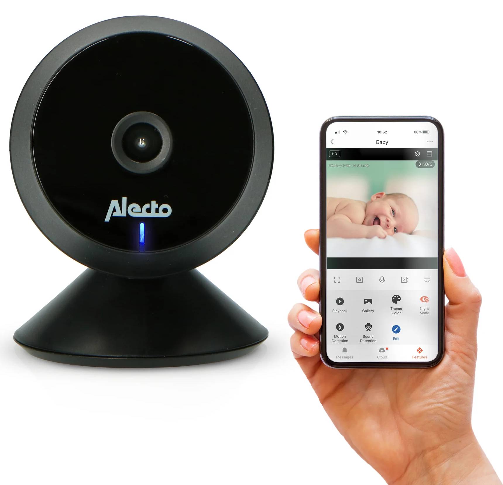 Dětská Wi-Fi chůvička Alecto SMARTBABY5BK s kamerou vám umožní sledovat vaše dítě, ať jste kdekoli, prostřednictvím smartphonu či tabletu. Obdržíte push notifikace v případě hluku i pohybu. Tato chytrá chůvička s HD kamerou má výjimečnou kvalitu obrazu a zvuku.