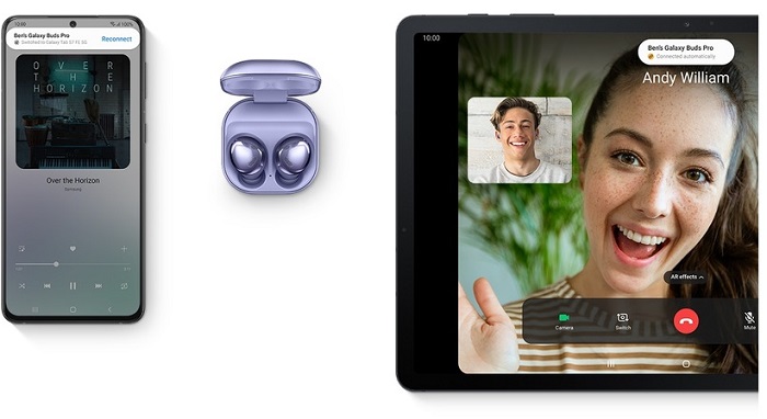 Synchronizujte svoj tablet s ostatnými zariadeniami Galaxy a vytvorte si dokonalé prostredie prispôsobené vašim potrebám. Presúvajte stránky do jednotlivých zariadení, kopírujte text v tablete a vkladajte ho do telefónu. A keď počas prezerania obsahu na tablete potrebujete prijať hovor z telefónu, zariadenie Galaxy Buds sa k nemu automaticky pripojí a po skončení sa prepne späť, takže môžete nerušene pokračovať vo svojej činnosti.