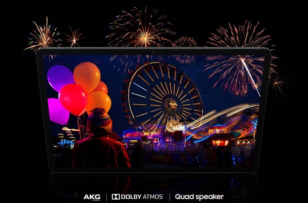 Galaxy Tab S7+ ponúka úžasný 12,4" Super AMOLED displej s farebným gamutom NTSC, na ktorom si vychutnáte akýkoľvek obsah, od pracovných prezentácií až po filmy vo vysokom rozlíšení. Obrazovka navyše šetrí váš zrak znížením emisií modrého svetla, čo potvrdzuje certifikát Eye Care. Ak k tomu pridáte skvelý zvuk vyladený spoločnosťou AKG a s podporou Dolby Atmos, ktorý sa šíri zo štyroch reproduktorov, získate zážitok ako v kine.