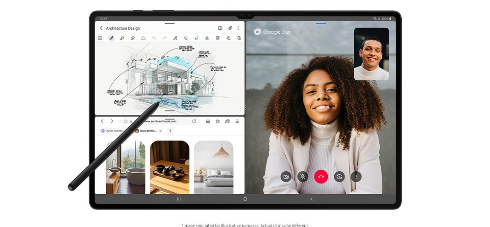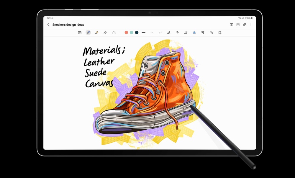 Batéria 10 090 mAh potom zaručuje dlhú výdrž. Produktivitu zvyšuje aj dodávaný stylus S Pen a bezpečnosť údajov zaisťuje čítačka odtlačkov prstov integrovaná do displeja.