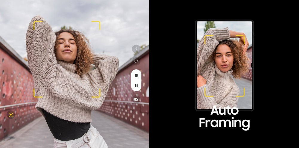 Otrpčuje vás neustále nastavovanie správneho uhla pri snímaní, aby ste boli vždy v zábere? S praktickou funkciou Auto Framing môžete na túto nepríjemnosť zabudnúť, pretože automaticky udržiava objektív fotoaparátu zaostrený na vás - aj keď sa pohybujete. Rovnako dobre vám poslúži aj počas videohovorov, keď zaregistrujete nových účastníkov chatu a zväčšíte predný objektív, aby sa celá skupina pohodlne zmestila na obrazovku. Vďaka tomu budete mať pocit, že všetci sedíte v jednej miestnosti.