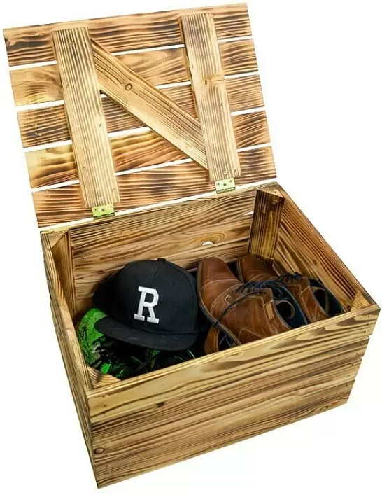 Táto debnička má veko, ktoré je pripevnené pomocou dvoch pántov, takže sa ľahko otvára a zatvára. Skvelý úložný box do záhrady, na balkón alebo do domácnosti, ktorý sa dá samozrejme použiť aj na odkladanie vecí.