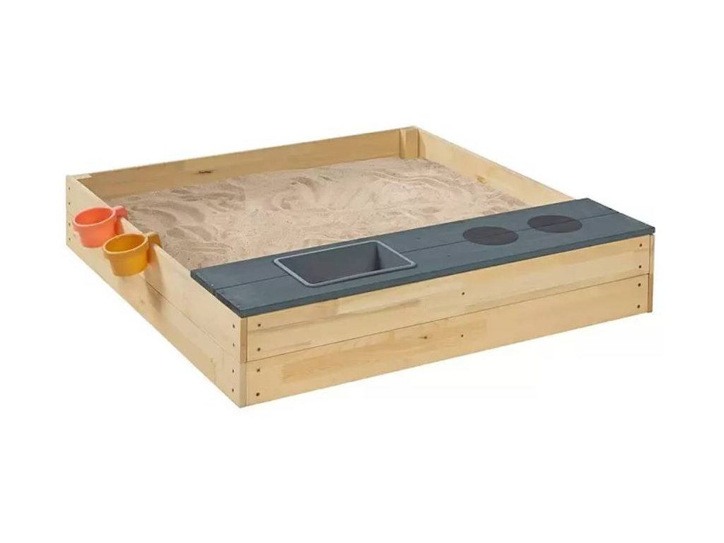 Drevené pieskovisko Sun / 100 x 100 x 19 cm / výška sedadla 19 cm / prírodné/sivé