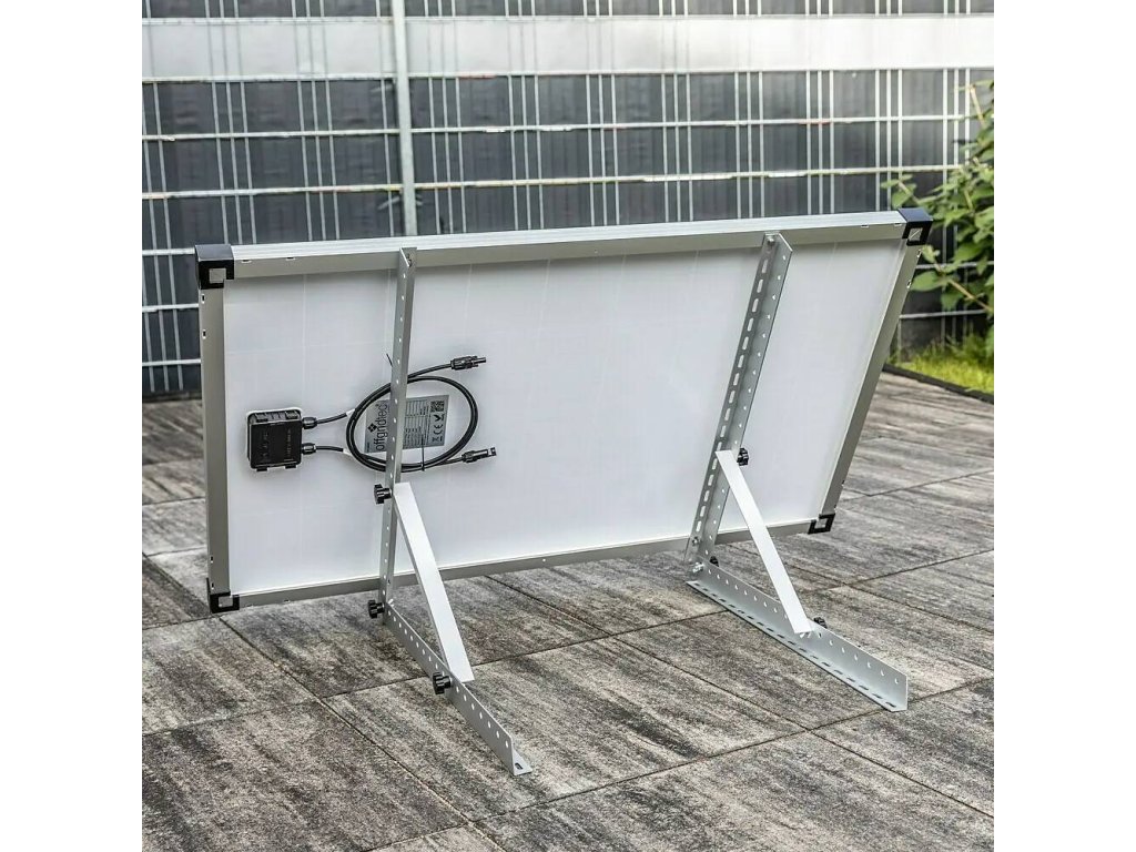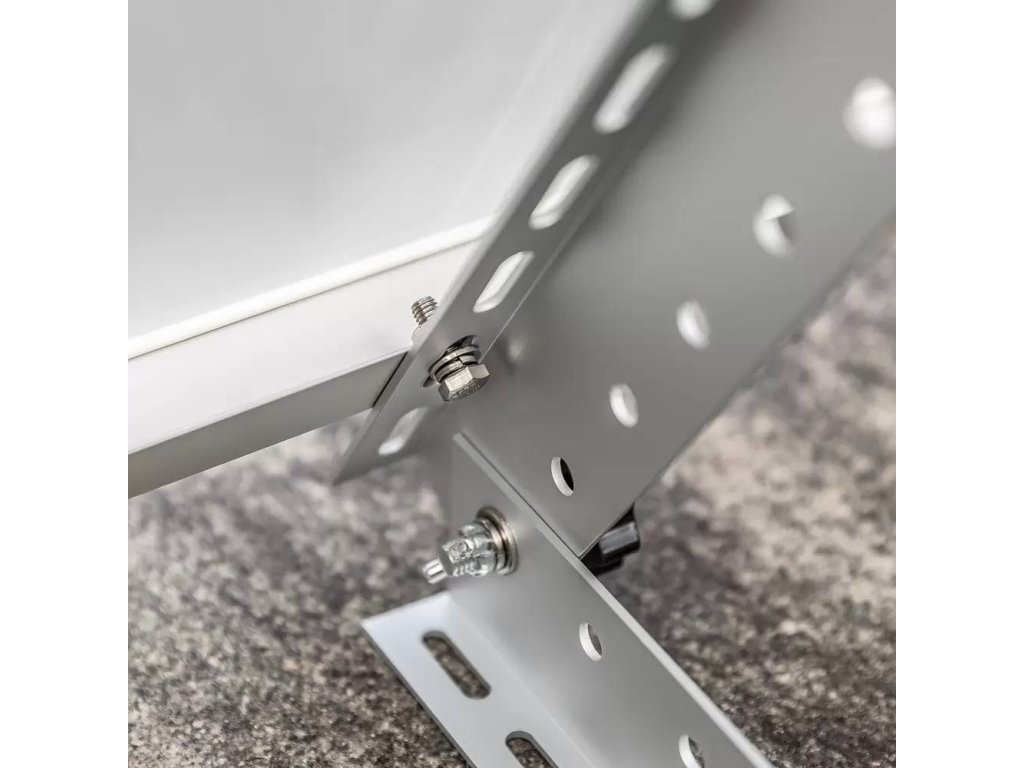 Tento robustný hliníkový držiak je určený na montáž jedného solárneho modulu (do 150 W, max. šírka 712 mm) - ideálna voľba pre strešné a nástenné inštalácie. Vďaka nastaviteľnému sklonu v rozsahu 0-90° umožňuje optimalizovať uhol dopadu slnečného žiarenia, a tým maximalizovať výkon aj v prípade menších systémov.
