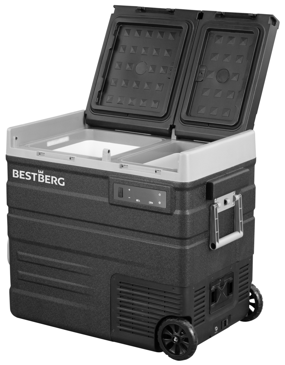 BestBerg BBPF-65D Dvojzónová prenosná kompresorová chladnička / 40 l + 16,7 l / 60 W / čierna/sivá