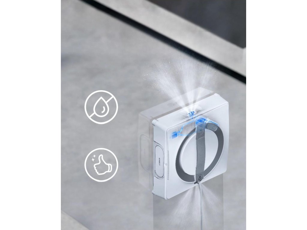 Robot na čistenie okien Winbot W2 čistí okná bez šmúh. Optimalizovaná technológia troch trysiek so širokým uhlom rozprašovania umožňuje účinné a efektívne čistenie v dokonalej koordinácii s mokrým mopom. Inteligentný šplhací systém je poháňaný optimalizovaným synchrónnym remeňom s obzvlášť vysokou odolnosťou proti vode a treniu, ktorý zabezpečuje stabilný pohyb bez šmýkania. Model W2 má úplne nový, vylepšený bezkartáčový motor, ktorý v kombinácii s inteligentným čistiacim programom WIN-SLAM 4.0 dosahuje až o 30 % vyššiu účinnosť čistenia.