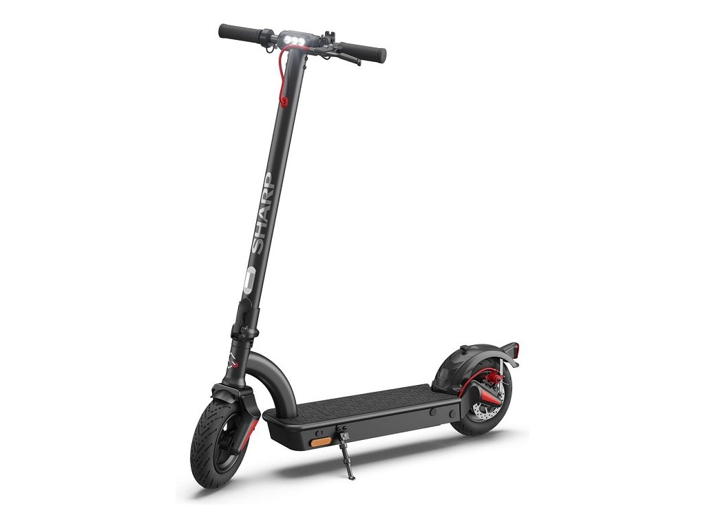 Poznajte elektrickú kolobežku Sharp EM-KS1AEU-B so zabudovaným displejom, dvojitým zadným odpružením a ovládaním pomocou aplikácie. Elektrická kolobežka Sharp predstavuje pohodlný a ekologický spôsob dopravy. Vďaka praktickému systému skladania môžete elektrickú kolobežku jednoducho a bez námahy vziať kamkoľvek so sebou. Umožňuje jazdiť rýchlosťou až 25 km/h a zaujme dojazdom až 40 km alebo dvojitým brzdným systémom. Hlavný dôraz sa kladie na bezpečnosť, čo dokazuje aj kvalitné LED osvetlenie. Zaujme však aj integrovaným Bluetooth pre spoluprácu s mobilnou aplikáciou alebo prehľadným LED displejom, ktorý vás v reálnom čase informuje o všetkých aspektoch jazdy.