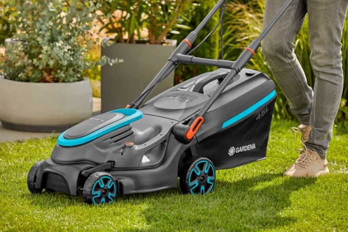 Gardena PowerMax 37/1800 G2 Elektrická kosačka na trávu / 1800 W / 500 m² / záber 37 cm / sivá/modrá