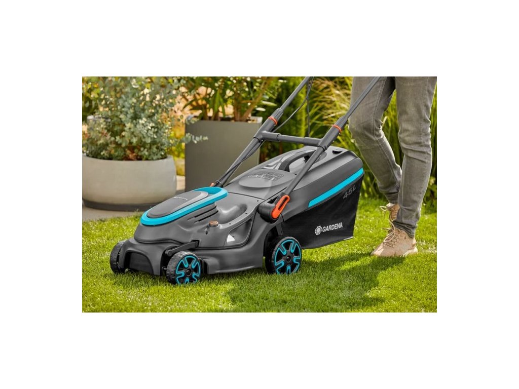 Gardena PowerMax 37/1800 G2 Elektrická kosačka na trávu / 1800 W / 500 m² / záber 37 cm / sivá/modrá