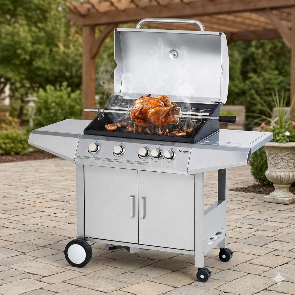 Elektrický otočný gril s motorom BBBQ-RS24 pre plynový gril BestBerg BBBQ-24ST / strieborný/čierny