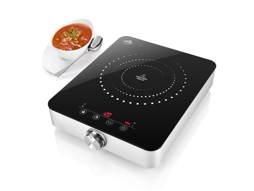 Indukčný varič ETA1800 W má elegantný nerezový dizajn sosklokeramickou varnou doskou a indukčnou zónou s priemerom 10-20 cm, na ktorú sa zmestia hrnce s priemerom dna 12 až 24 cm.