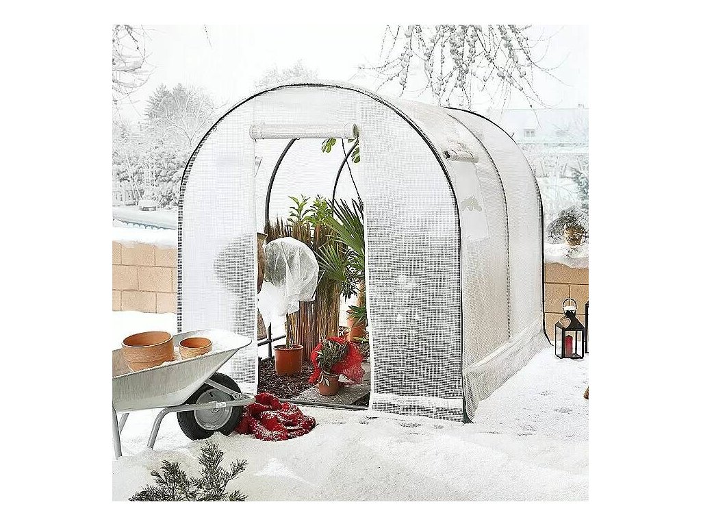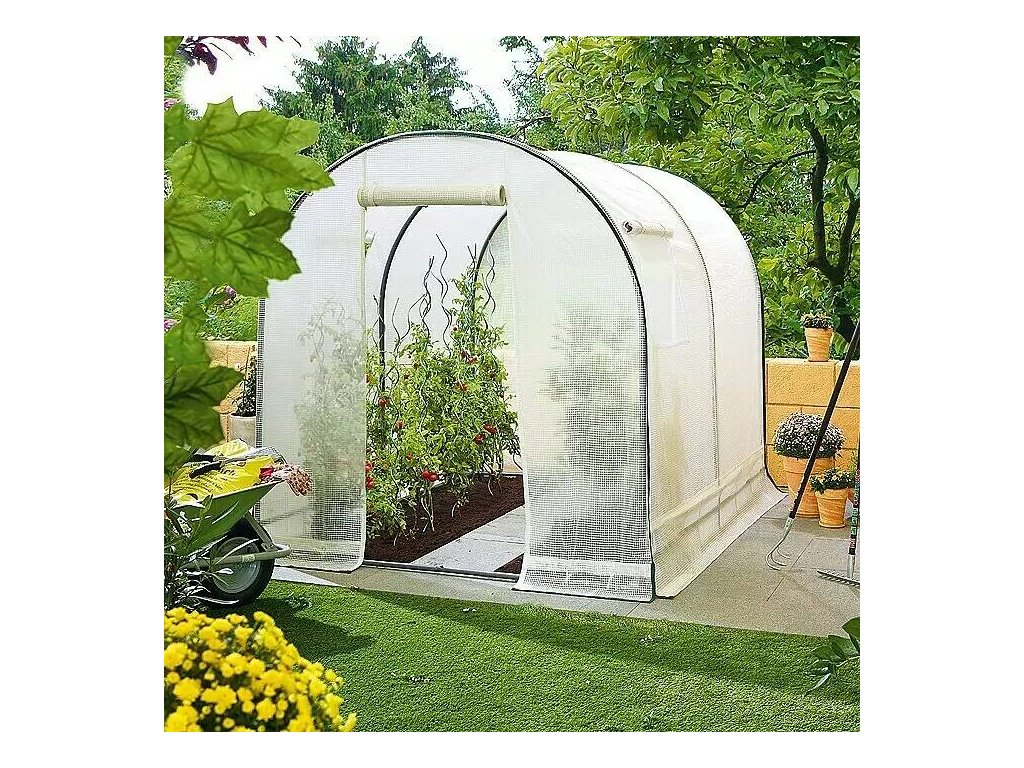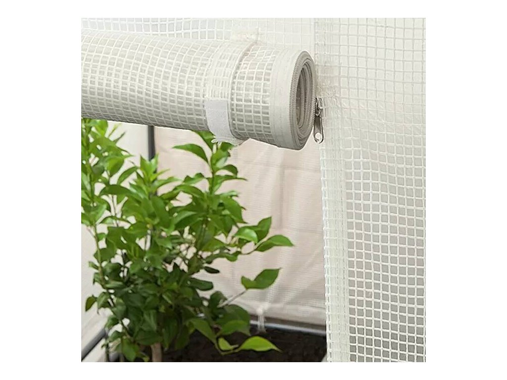Vďaka stabilnému oceľovému rámu sa dá skleník používať rôznymi spôsobmi. Priesvitná , mimoriadne hrubá mriežková fólia má ochranu proti UV žiareniu 5 % . Vďaka mriežkovému oknu aveľkým vstupným dverám môžete skleník v prípade potreby optimálne vetrať.