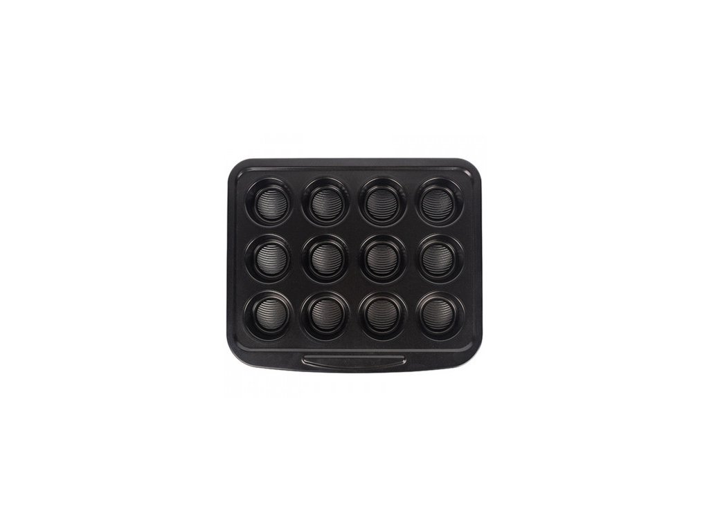 - Forma na muffiny Masterpro / 12 kusov / 37,2 x 31,4 x 3,3 cm / uhlíková oceľ / čierna