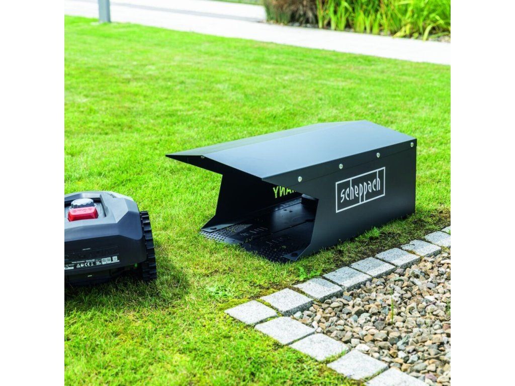 Scheppach RoboHome robotická kosačka Garáž / 74 x 44 x 30 cm / čierna