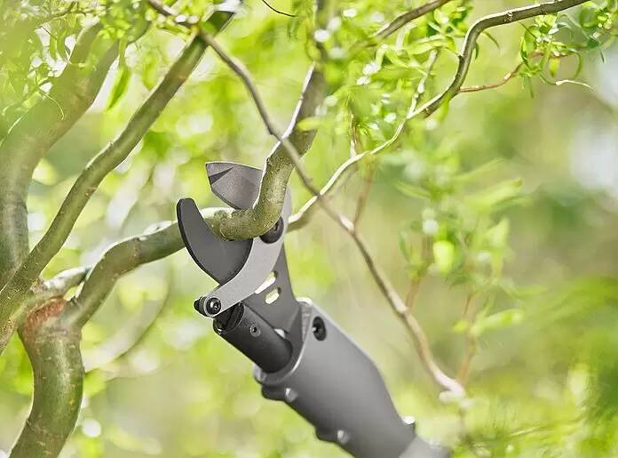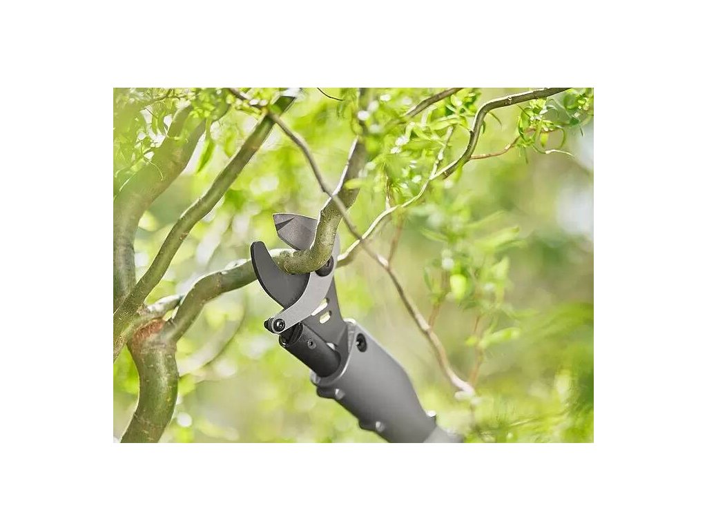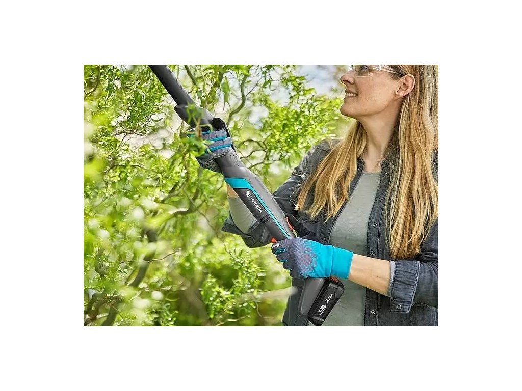 S akumulátorovými nožnicami na konáre Gardena Power EasyCut 110/18V P4A je strihanie konárov na stromoch a kríkoch jednoduché. Vďaka nízkej hmotnosti 1,9 kg dobre padne do ruky a ľahko sa používa pri ošetrovaní stromov. Na konáre vzdialené až 2,5 m sa dá ľahko dosiahnuť zo zeme. Čepele sú vyrobené z tvrdenej ocele nemeckej výroby. Čepele majú nepriľnavú povrchovú úpravu a sú precízne brúsené, takže sa na tenkú reznú hlavu neprilepia žiadne odrezky. Ergonomická rukoväť zaisťuje pohodlnú manipuláciu s dokonalým vyvážením. LED displej integrovaný v rukoväti informuje o stave nabitia batérie.
