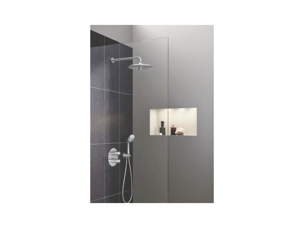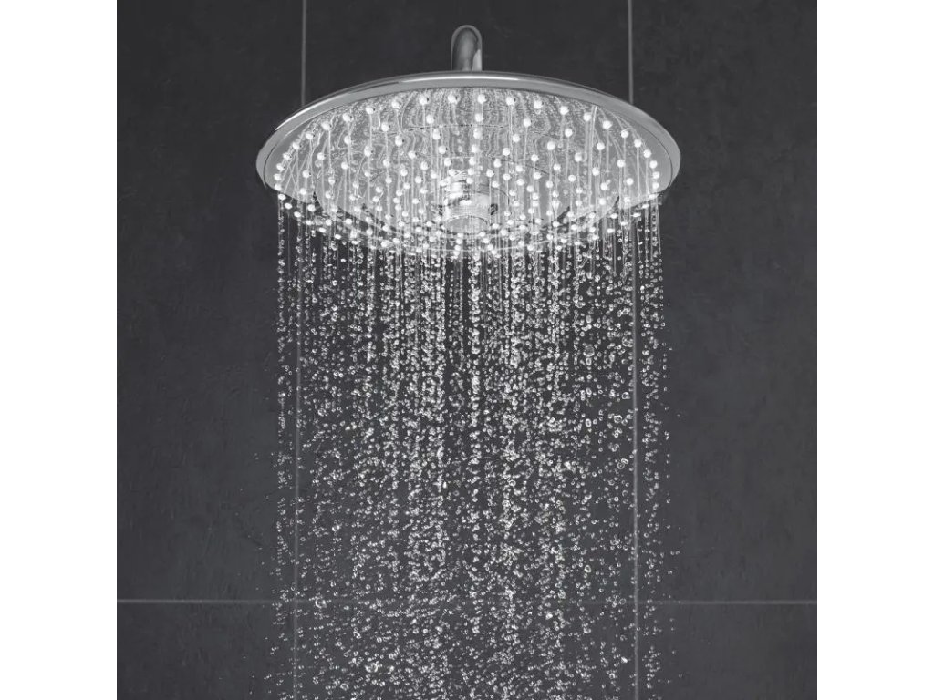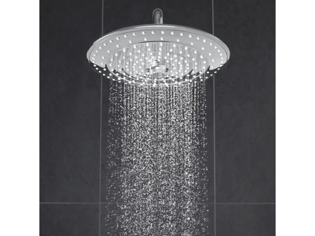 Maximálny komfort zabezpečuje Technológia GROHE DreamSpray, ktorá zaisťuje rovnomerný prúd vody zo všetkých trysiek bez kolísania. Povrchová úprava GROHE StarLight udržuje chróm lesklý a odolný voči poškriabaniu aj po rokoch používania. Vďaka systému SpeedClean možno usadeniny vodného kameňa ľahko odstrániť jednoduchým zotretím trysiek prstom. Okrem toho technológia Inner WaterGuide chráni povrch sprchy pred prehriatím, čím predlžuje jej životnosť.