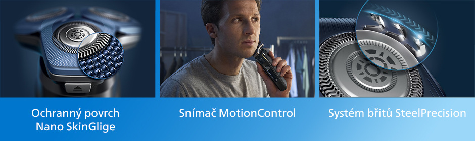 Užívejte si hladké oholení vytvořené na co nejméně pohybů bez nepříjemného podráždění kůže! Elektrický holicí strojek Philips řady 7000 využívá technologii SkinIQ, díky které vnímá váš způsob holení a přizpůsobuje se potřebám vaší pokožky. Je vybavený odolnými břity SteelPrecision, hlavami otočnými o 360° se speciálním povrchem snižující tření a důmyslnými kanálky, které jednotlivé vousy navádějí k rovnoměrnému zastřižení. Strojek využívá speciální senzor, který upravuje holicí výkon podle počtu vousů v dané oblasti a citlivý senzor pohybu, který sleduje každý váš pohyb po pokožce.