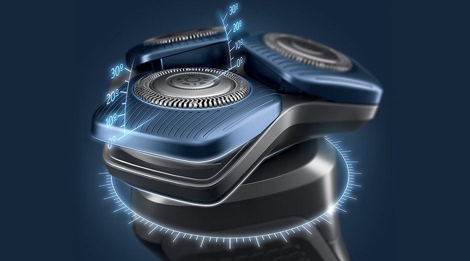 Hlavy holicího strojku se otáčejí až o 360°, jsou mimořádně flexibilní a perfektně se přizpůsobují jedinečným tvarům vaší tváře. Na jejich povrchu jsou umístěné speciální kanálky, které jednotlivé vousy navádějí v optimálním úhlu k perfektnímu zastřižení pro dokonale hladké oholení.
