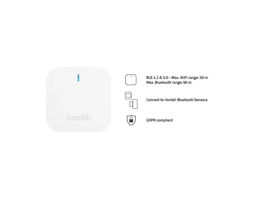 Hombli Smart Bluetooth Bridge je doslova most medzi vašou sieťou Wi-Fi a snímačmi Bluetooth. Most sa pripája do elektrickej zásuvky a na pripojenie k vašim snímačom využíva energeticky efektívnu, bezpečnú a spoľahlivú technológiu. Hombli Smart Bluetooth Contact Sensor Hombli Smart Bluetooth Contact Sensor je bezdrôtový magnetický kontaktný senzor.