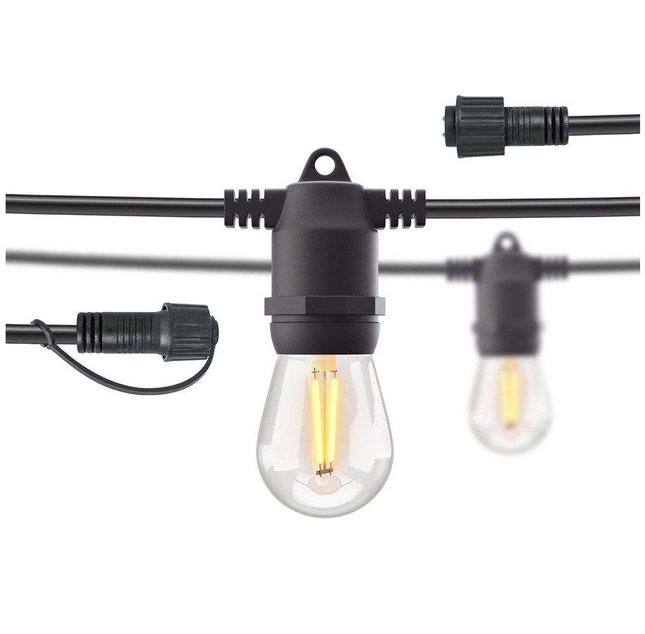 Pripojením tohto predlžovacieho dielu k Hombli Smart Outdoor String Light môžete väčším vonkajším priestorom dodať teplú a útulnú atmosféru. Toto predĺženie je dlhé 5 metrov a má 10 žiaroviek (DC12V) s teplým bielym svetlom. Predĺženie Hombli Smart Outdoor String Light je špeciálne navrhnuté na vonkajšie použitie a odolné voči poveternostným vplyvom.