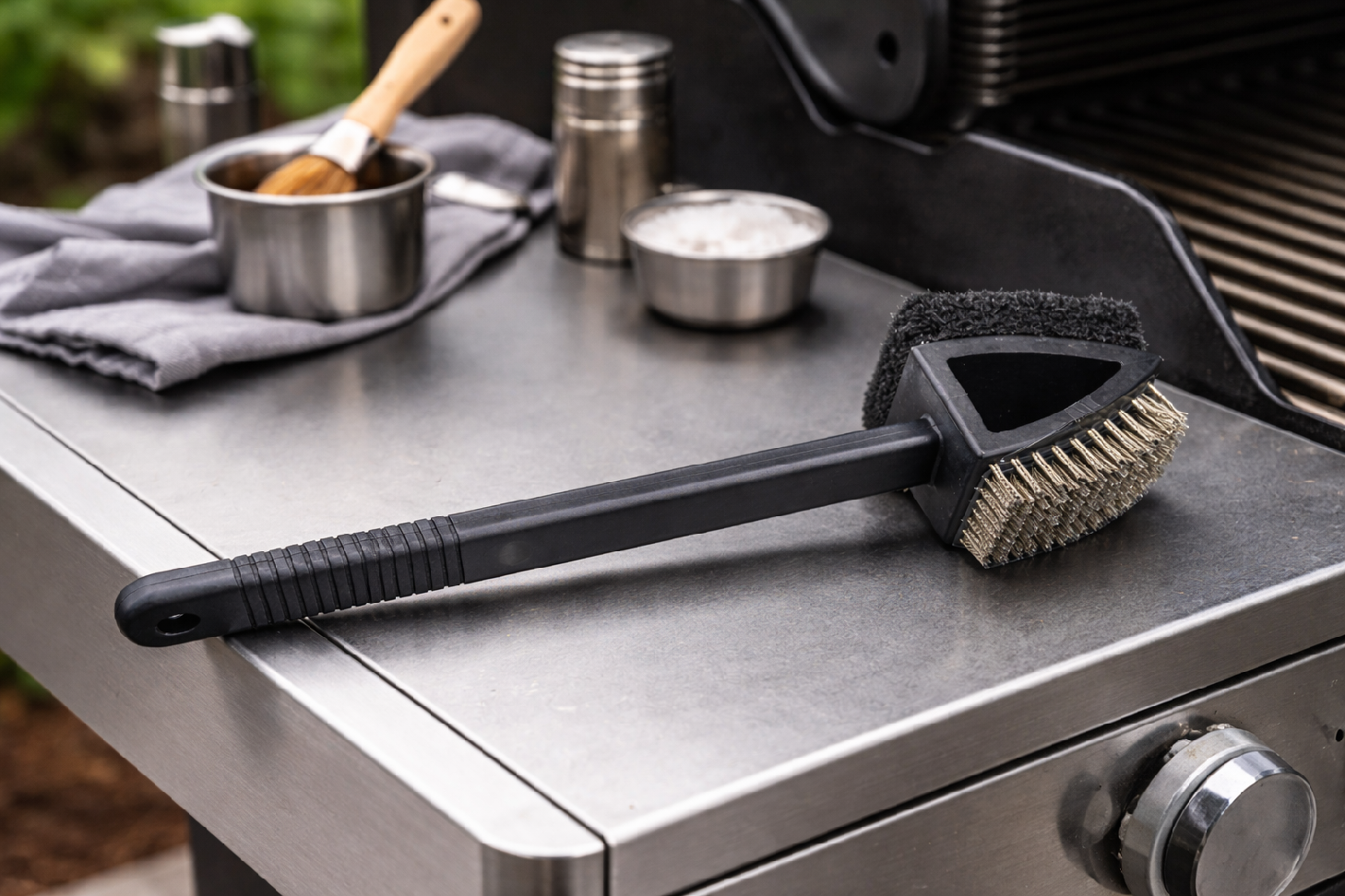 Hlboká konštrukcia a kvalitné materiályKartáč je vyrobený z kombinácie PVC, PP plastu a oceľového drôtu, čo zaručuje dlhú životnosť a vysokú účinnosť. Ocelový drôt je usporiadaný v hustých radoch (8 × 10), vďaka čomu kefa účinne čistí aj ťažko dostupné miesta roštu.
