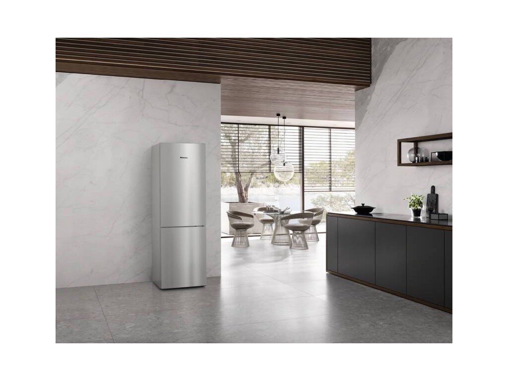 Chladnička Miele KD 4072 E je symbolem jednoduchého elegantního designu v nerezové barvě. Chladicí část nabízí 214 l a mrazicí 94 l. Uskladníte zde i větší nákup a díky zásuvce DailyFresh s nastavitelnou vlhkostí můžete udržet ovoce a zeleninu déle svěží a chutné. Chladnička disponuje systémem DuplexCool, který odděluje vzduchové okruhy pro chladničku a mrazák. Díky LED osvětlení uvidíte uvnitř do každého koutku. Funkce ComfortFrost vám dopřeje méně časté odmrazování. V mrazáku najdete XXL přihrádku, ve které je dostatek místa i na velké balení masa či zeleniny, a s pomocí Supermrazení je i rychleji zamrazíte. Až 17 hodin vydrží potraviny neporušené v případě výpadku proudu. Kdyby zůstala dvířka otevřená, akustický signál vás na to upozorní. V případě potřeby lze změnit směr otevírání dveří. Miele KD 4072 E nabízí skvělý výkon s mnoha inovativními funkcemi, stává se tak nepostradatelným partnerem pro uchovávání potravin.