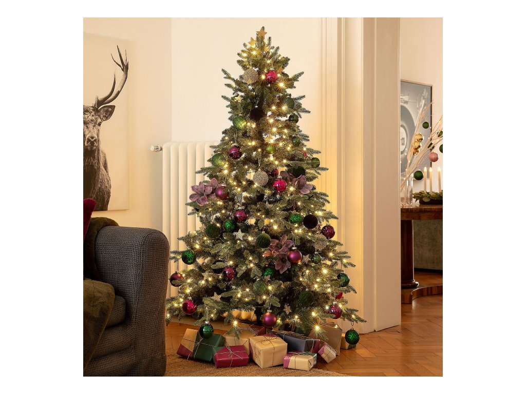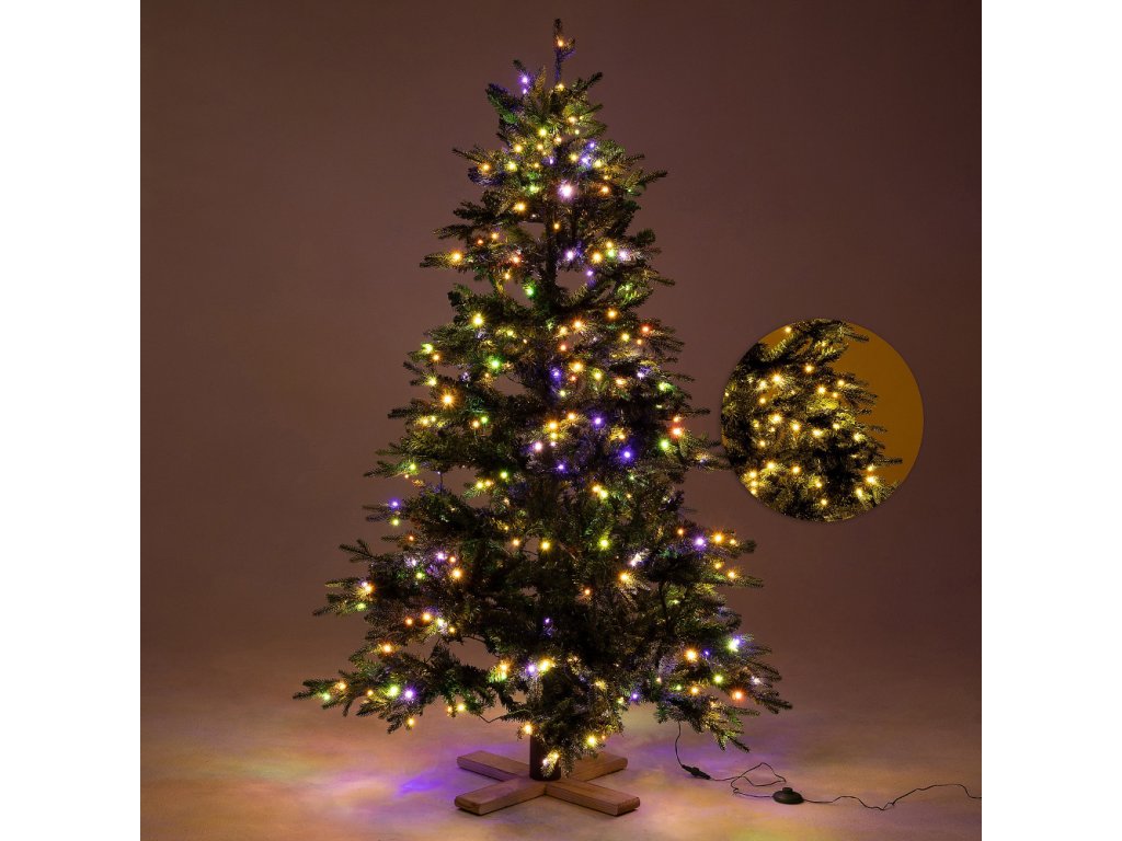 Umelý stromček je vybavený integrovaným osvetlením Multi-LED. Pomocou diaľkového ovládača môžete vyberať medzi klasickými svetelnými efektmi. To znamená, že si stromček môžete vychutnať rôznymi a novými spôsobmi v závislosti od dennej doby a vašej nálady. Programy zahŕňajú klasické stále osvetlenie, viacfarebné stále osvetlenie, pomalé blednutie v teplej bielej alebo viacfarebnej farbe, iskrivé pulzujúce teplé biele alebo viacfarebné osvetlenie a funkciu stmievania. Technológia Easy Power zabezpečuje aktiváciu osvetlenia posunutím častí stromčeka k sebe. LED diódy sú tiež zabezpečené technológiou ContinuosOn, takže ak jedna z nich zlyhá, ostatné budú svietiť ďalej. Jednoduché prepínanie zabezpečuje aj nožný pedál.