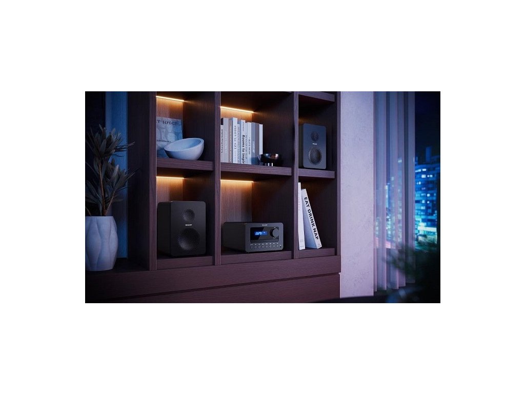 Sharp XL-B514(BK) je mikrosystém, ktorý na prvý pohľad zaujme moderným a štýlovým dizajnom. Dokonale sa hodí do každého priestoru, kde si chcete spríjemniť prácu a voľný čas počúvaním obľúbenej hudby. Skladby môžete prehrávať bezdrôtovo prostredníctvom Bluetooth alebo môžete použiť CD disk, USB alebo audio vstup. A ak práve nemáte vlastnú hudbu, nie je nič jednoduchšie ako naladiť rádio na< FM frekvenciu a uložiť si obľúbené stanice do< predvolieb pre rýchly a jednoduchý prístup v budúcnosti.