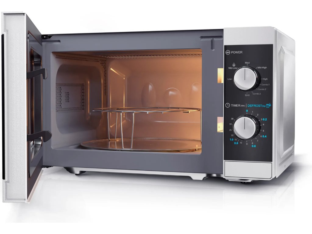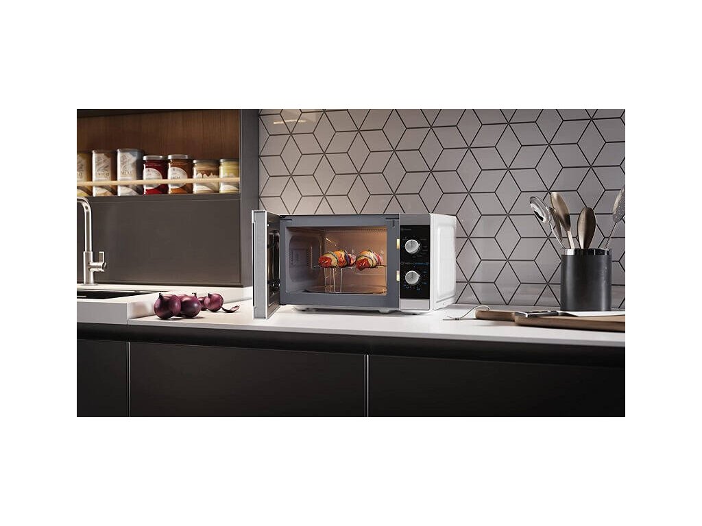 Trouba disponuje objemem 20 l a má otočný skleněný talíř s průměrem 25,5 cm. Vysokofrekvenční elektromagnetické vlnění šetří energii i čas. Vnitřní osvětlení vám poskytne dokonalou kontrolu během přípravy a vnitřní povrch se v případě potřeby velmi dobře čistí. Balení obsahuje grilovací rošt s rozměrem 22 × 6,6 cm.