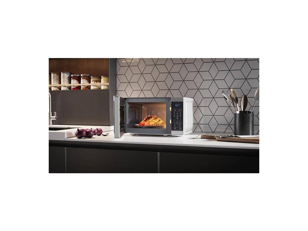 Jednoducho čitateľný LED displej zobrazuje čas, keď sa mikrovlnná rúra nepoužíva, a je vybavený aj kuchynským časovačom. Vďaka 8 automatickým programom a 11 úrovniam výkonu môžete variť, rozmrazovať a ohrievať jediným stlačením tlačidla.