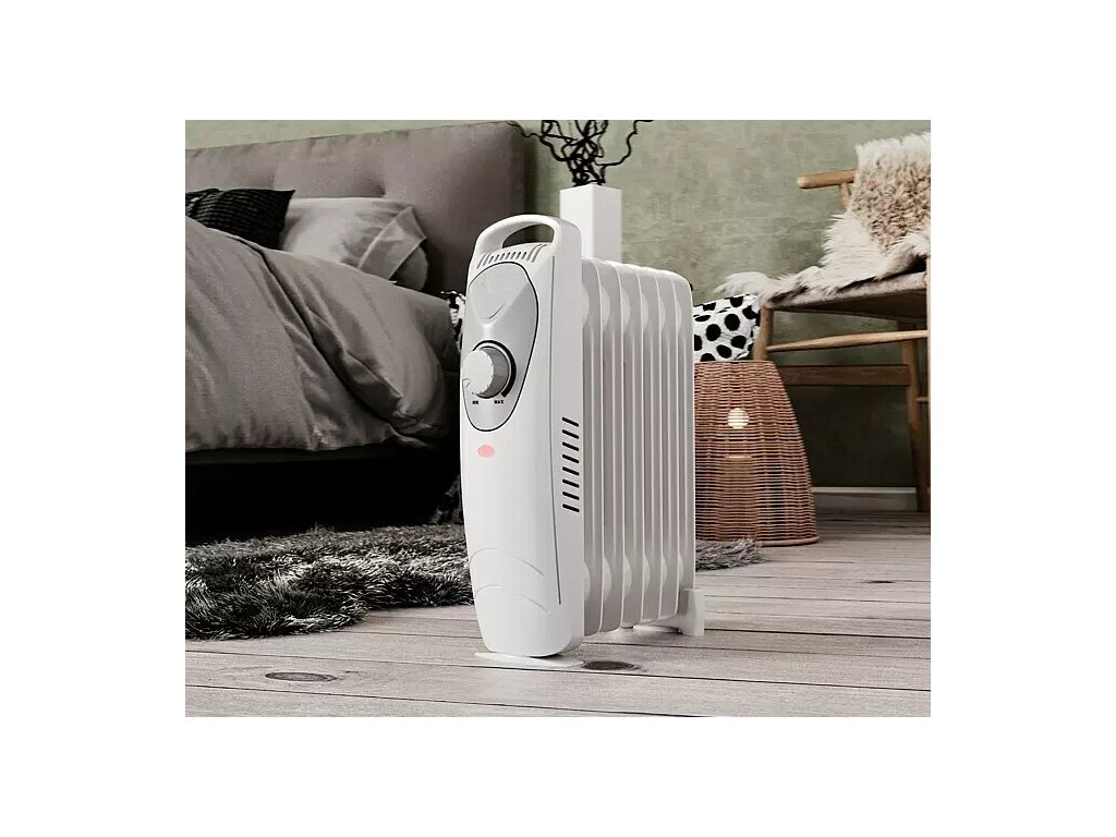 Olejový radiátor poskytuje rýchle a pohodlné vykurovanie miestnosti s maximálnym vykurovacímvýkonom 800 W. Sedem lamiel naplnených olejom vydáva príjemné teplo ešte dlho po vypnutí napájania, pretože olej dlho udržiava teplo. Olejový radiátor stačí zapojiť do zásuvky, nastaviť požadovanú teplotu na ovládači termostatu nad kontrolkou a radiátor šíri príjemné teplo.