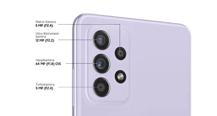 So štvoricou fotoaparátov smartfónu Galaxy A52 ste dobre vybavení takmer na každú situáciu: zhotovujte ostré, jasné fotografie vo vysokom rozlíšení pomocou 64Mpx hlavného fotoaparátu s OIS, zažite široké zorné pole s ultraširokouhlým fotoaparátom, upravte hĺbku ostrosti pomocou hĺbkovej kamery alebo objavujte detaily pomocou makrofotografie.