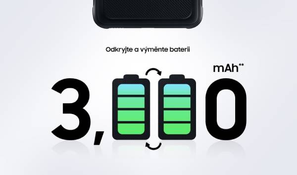 Na veľkolepé výlety potrebujete dostatok energie a rovnako tak aj váš smartfón. Preto je Galaxy XCover 5 vybavený výkonnou batériou s typickou kapacitou 3 000 mAh. V prípade, že sa vybije, môžete batériu jednoducho vymeniť za náhradnú alebo ju dobiť pomocou rýchleho 15W zdroja napájania. A vďaka dvom vývodom POGO máte dokonca možnosť nabíjať viacero zariadení súčasne.